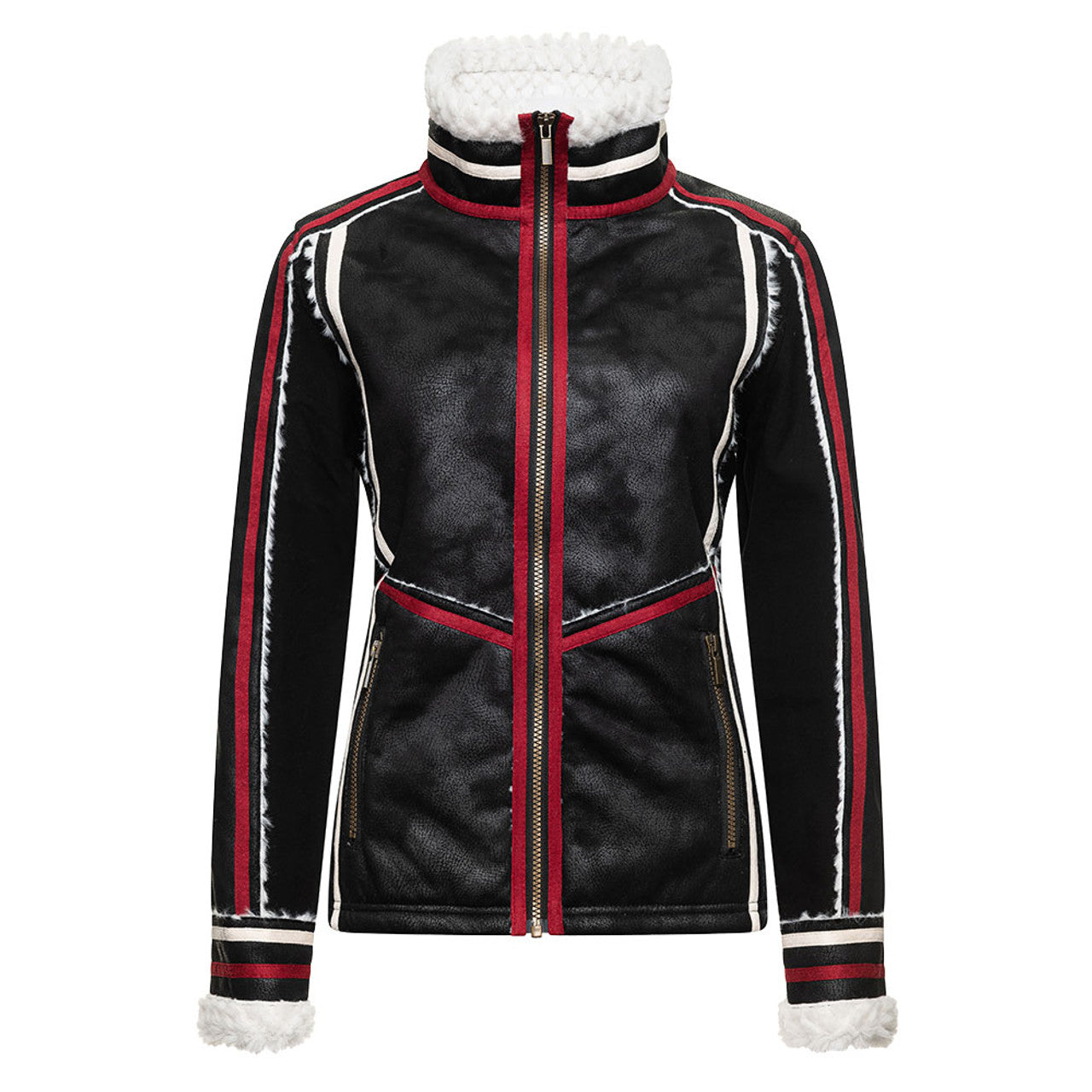 Bold and beautifully refined, the Sunrise Jacket captures the spirit of adventure with a modern edge. Crafted from distressed vegan suede for a softly weathered look, this statement piece pairs warmth with striking design. The pop of red trim against the black body adds a sophisticated contrast, while the white faux fur accents at the neckline and cuffs bring cozy texture and a touch of alpine chic. Thoughtfully placed seams and a hint of stretch create a flattering silhouette, and zippered pockets keep essentials close. Whether you’re fireside at the lodge or out for a winter stroll, the Sunrise Jacket wraps you in warmth and confident style.