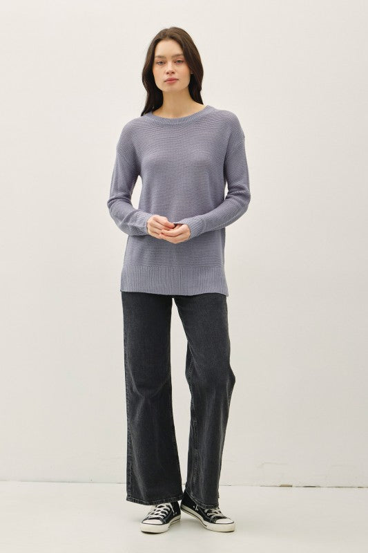 The Weekend Ease Sweater is designed for laid-back comfort with a refined touch. Featuring a relaxed boyfriend fit and dropped shoulders, it offers an effortless silhouette that feels easy and flattering. The mini waffle texture adds subtle dimension, while ribbed cuffs and side slits provide structure and movement. This sweater is perfect for casual days, cozy weekends, or layering with your favorite denim and boots for an understated, pulled-together look.